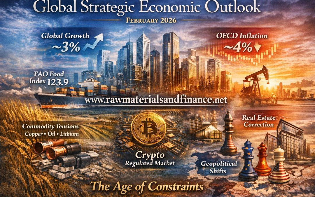 Commodity markets operate within an intermediate pricing regime, without speculative excess. Hydrocarbon prices remain relatively stable, while strategic industrial metals (copper, aluminum, lithium) face structural tension between transition-driven demand and constrained supply capacity.
