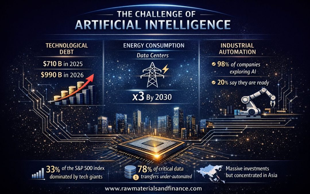 The artificial intelligence revolution is often depicted as an unstoppable, linear triumph. Yet behind the media narrative, financial, energy, and industrial data from early 2026 reveal unprecedented fragilities. Massive debt accumulation, concentrated actors, energy constraints, and fragmented industrial processes paint a complex picture in which technological promises clash with tangible realities.