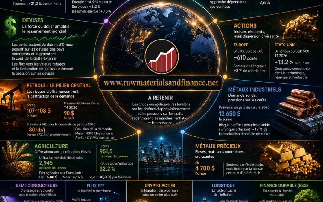 La note de cette semaine pourrait se résumer ainsi : les marchés financiers ne peuvent plus être analysés uniquement par les taux, les résultats ou la liquidité. Ils doivent être relus à travers les routes maritimes, les stocks, les raffineries, les engrais, l’énergie, les métaux et les infrastructures numériques.
